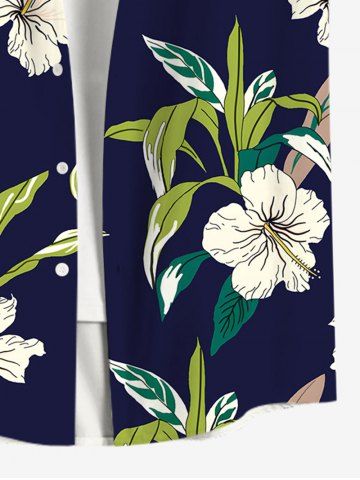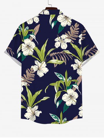 Short Sleeves Shirts > Plus Size Tropical Leaf Plant Hibiscus Flower Print Hawaii Button Pocket Shirt For Men