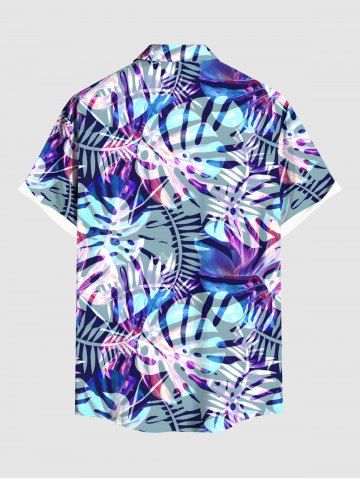 Plus Size Tropical Leaf Print Buttons Pocket Hawaii Shirt For Men - Purple - L