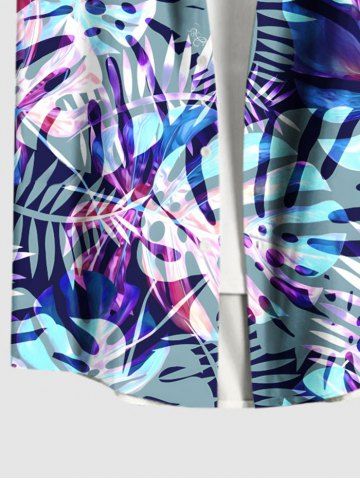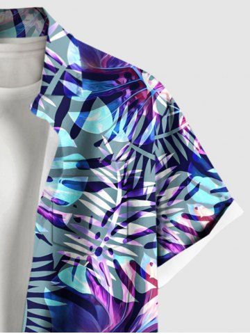 Plus Size Tropical Leaf Print Buttons Pocket Hawaii Shirt For Men - Purple - 6xl