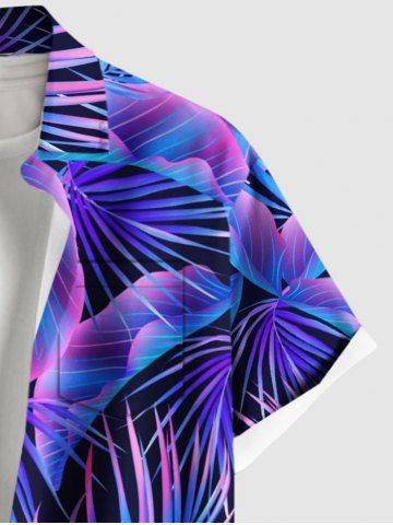 Plus Size Tropical Leaf Print Buttons Pocket Hawaii Shirt For Men - Purple - Xl