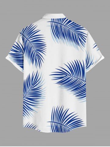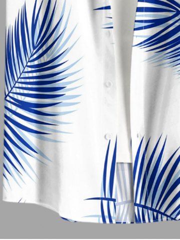 Plus Size Tropical Leaf Print Buttons Pocket Hawaii Shirt For Men - Blue - 2xl