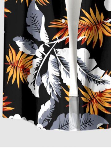 Plus Size Tropical Leaf Print Buttons Pocket Hawaii Shirt For Men - Black - M