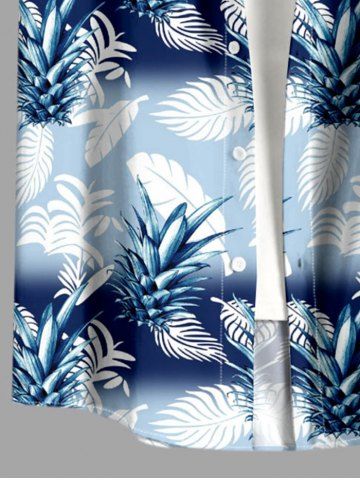 Plus Size Tropical Leaf Print Buttons Pocket Hawaii Shirt For Men - Sky Blue - 2xl