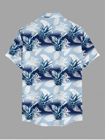 Plus Size Tropical Leaf Print Buttons Pocket Hawaii Shirt For Men - Sky Blue - 3xl