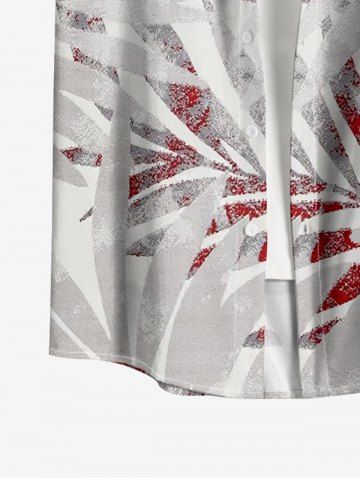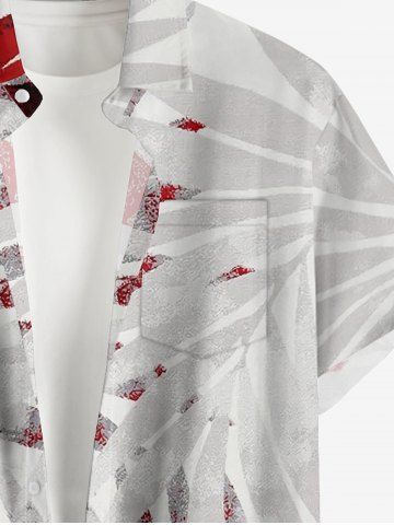 Plus Size Tropical Leaf Print Hawaii Button Pocket Shirt For Men - Red - S