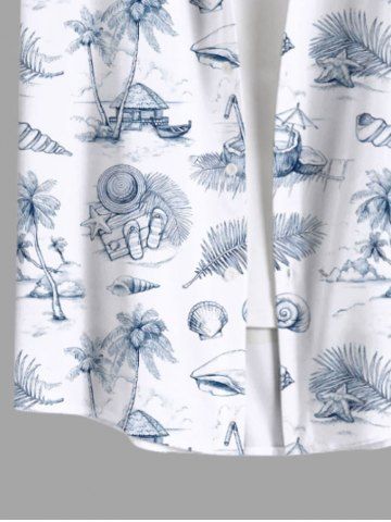 Plus Size Tropical Leaf Starfish Conch Coconut Tree Hand Paint Print Buttons Pocket Hawaii Shirt For Men - White - 3xl