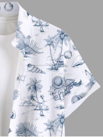 Plus Size Tropical Leaf Starfish Conch Coconut Tree Hand Paint Print Buttons Pocket Hawaii Shirt For Men - White - 6xl