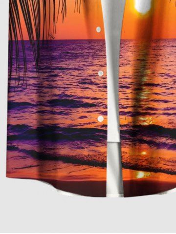 Plus Size Tropical Leaf Sun Waves Seascape Print Buttons Pocket Hawaii Shirt For Men - Orange - 4xl