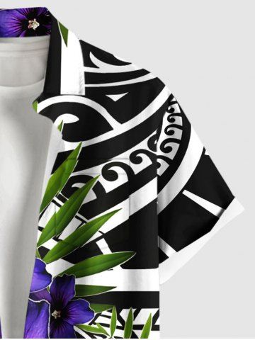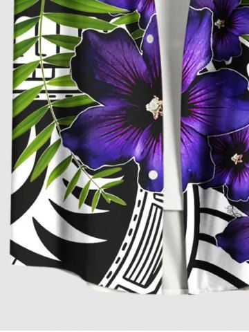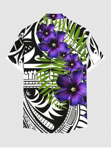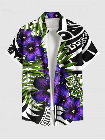 Plus Size Tropical Leaves Floral Ethnic Graphic Print Hawaii Button Pocket Shirt For Men - Black - M