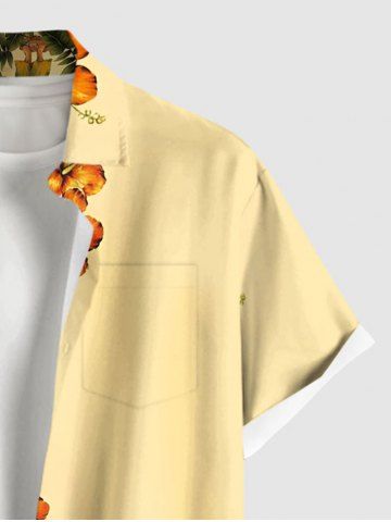 Plus Size Tropical Leaves Floral Hula Dancer Print Hawaii Button Pocket Shirt For Men - Yellow - 3xl