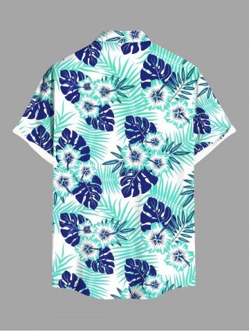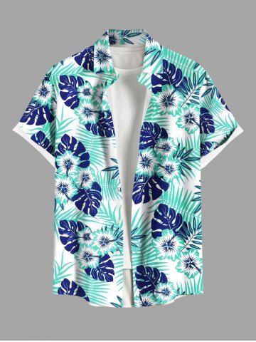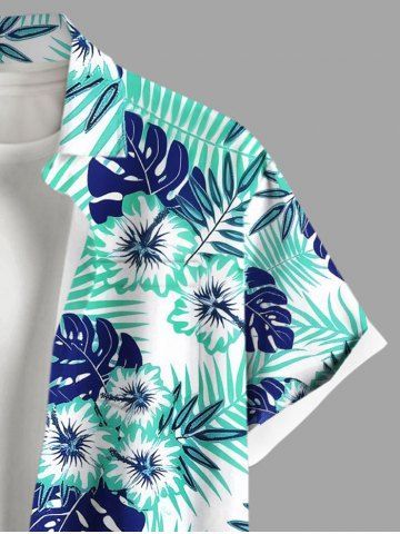 Short Sleeves Shirts > Plus Size Tropical Leaves Floral Print Hawaii Button Pocket Shirt For Men