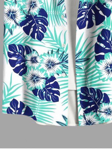Plus Size Tropical Leaves Floral Print Hawaii Button Pocket Shirt For Men - Light Blue - Xl