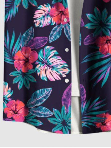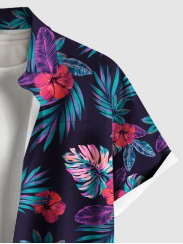 Short Sleeves Shirts > Plus Size Tropical Leaves Floral Print Hawaii Button Pocket Shirt For Men