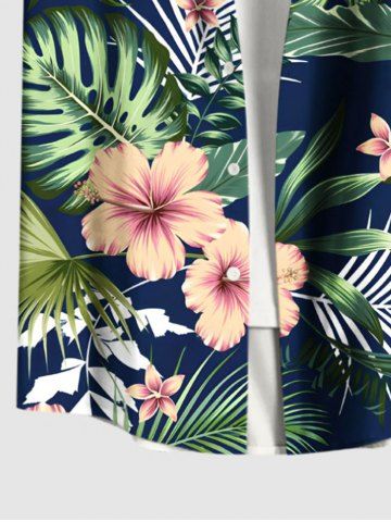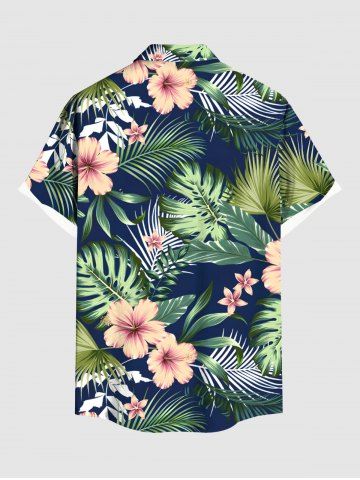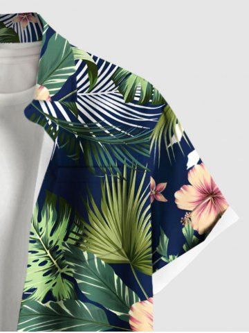 Short Sleeves Shirts > Plus Size Tropical Leaf Flower Print Hawaii Button Pocket Shirt For Men