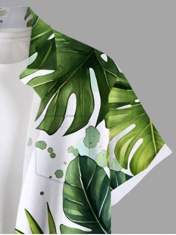 Plus Size Tropical Leaf Hibiscus Flower Print Hawaii Button Pocket Shirt For Men - Green - L