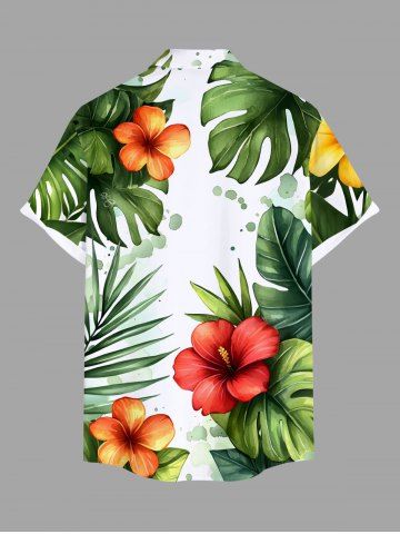 Short Sleeves Shirts > Plus Size Tropical Leaf Hibiscus Flower Print Hawaii Button Pocket Shirt For Men
