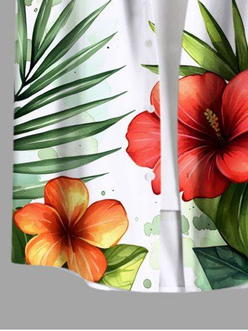 Short Sleeves Shirts > Plus Size Tropical Leaf Hibiscus Flower Print Hawaii Button Pocket Shirt For Men