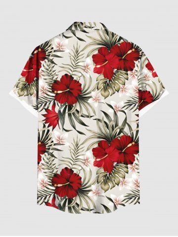 Short Sleeves Shirts > Plus Size Tropical Leaf Hibiscus Flower Print Hawaii Button Pocket Shirt For Men