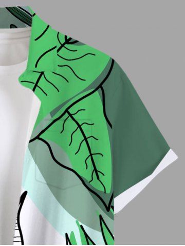 Plus Size Tropical Leaves Ombre Colorblock Print Hawaii Button Pocket Shirt For Men - Green - 2xl