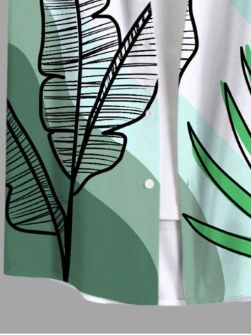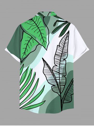 Plus Size Tropical Leaves Ombre Colorblock Print Hawaii Button Pocket Shirt For Men - Green - 4xl