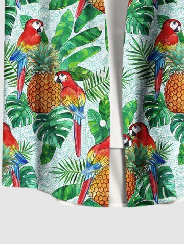 Plus Size Tropical Leaves Pineapple Parrot Print Hawaii Button Pocket Shirt For Men - Green - 4xl