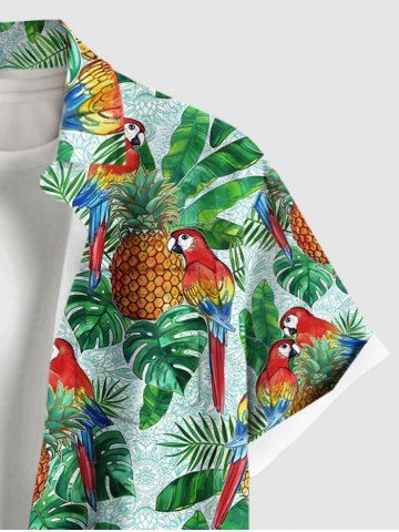 Short Sleeves Shirts > Plus Size Tropical Leaves Pineapple Parrot Print Hawaii Button Pocket Shirt For Men