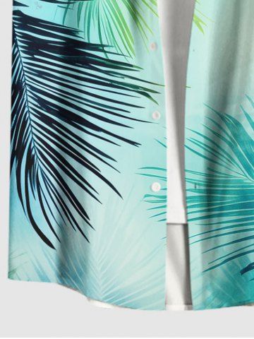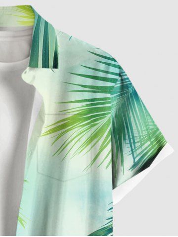 Plus Size Tropical Leaves Print Hawaii Ombre Button Pocket Shirt For Men - Green - 6xl