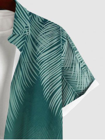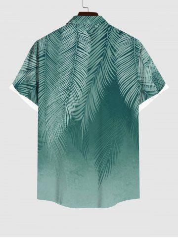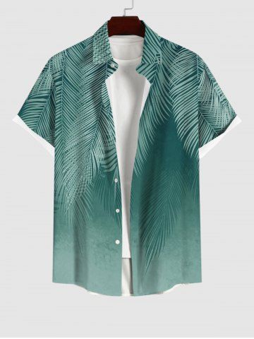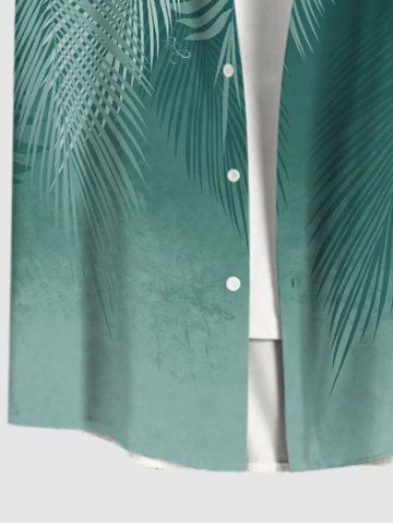 Plus Size Tropical Palm Tree Leaf Ombre Print Buttons Pocket Hawaii Shirt For Men - Light Green - L