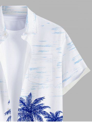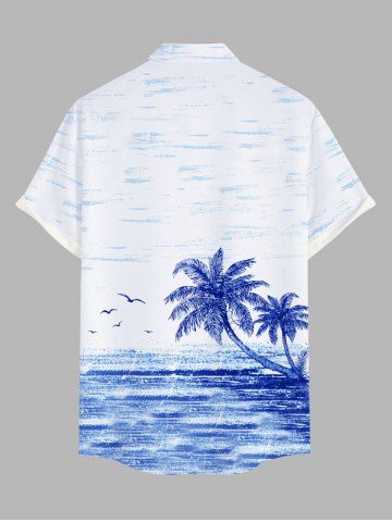 Plus Size Tropical Sea Coconut Tree Seagull Cloud Print Buttons Pocket Hawaii Shirt For Men - White - 4xl