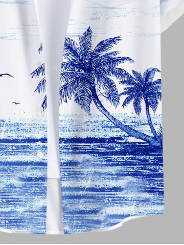 Plus Size Tropical Sea Coconut Tree Seagull Cloud Print Buttons Pocket Hawaii Shirt For Men
