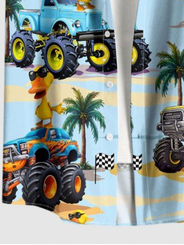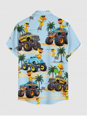 Plus Size Truck Ducks Coconut Tree Print Buttons Pocket Hawaii Shirt For Men - Light Blue - 5xl