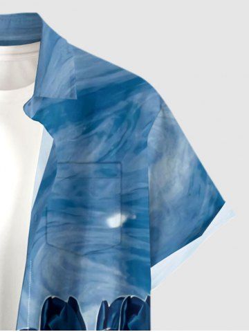 Plus Size Tulip Flower Painting Print Hawaii Button Pocket Shirt For Men - Sky Blue - 5xl