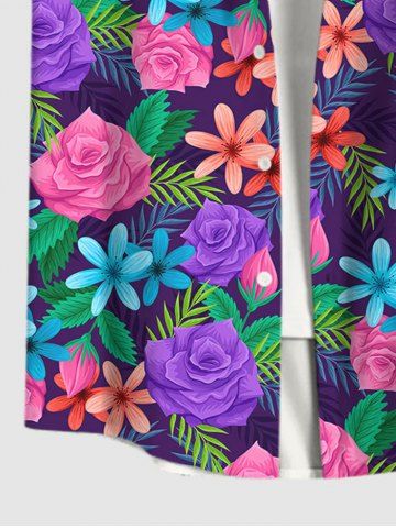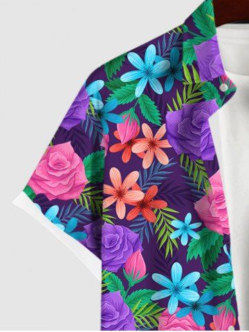 Hawaii Plus Size Turn-down Collar Colorful Flower Leaf Print Button Pocket Shirt For Men - Multi-a - 4xl