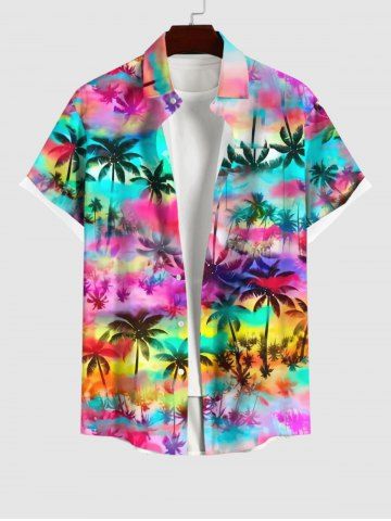 Hawaii Plus Size Turn-down Collar Colorful Ombre Galaxy Coconut Tree Print Button Pocket Shirt For Men - Multi-a - 2xl