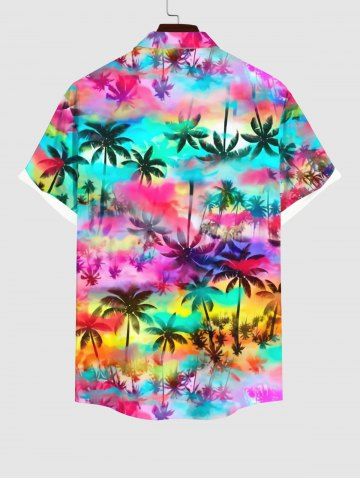 Hawaii Plus Size Turn-down Collar Colorful Ombre Galaxy Coconut Tree Print Button Pocket Shirt For Men - Multi-a - 4xl