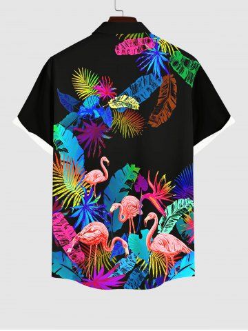 Hawaii Plus Size Turn-down Collar Flamingo Coconut Tree Leaf Print Button Pocket Shirt For Men - Black - L