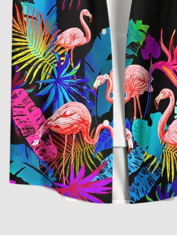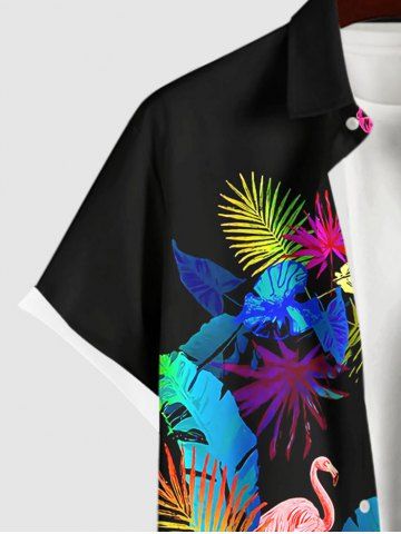 Hawaii Plus Size Turn-down Collar Flamingo Coconut Tree Leaf Print Button Pocket Shirt For Men - Black - 4xl