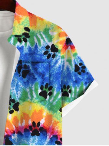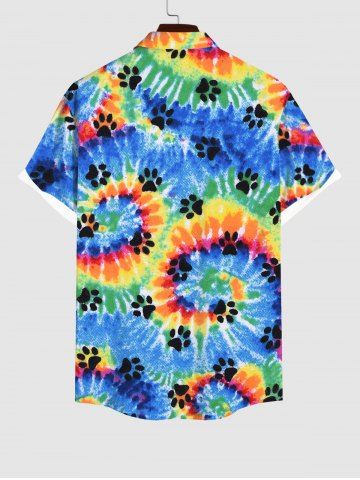 Hawaii Plus Size Turn-down Collar Spiral Watercolor Tie Dye Cat Paw Print Buttons Pocket Beach Shirt For Men - Multi-a - Xl