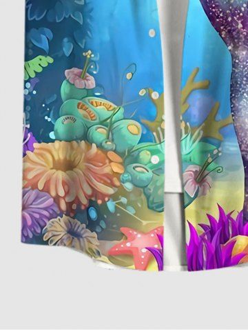 Hawaii Plus Size Turn-down Collar Sea Creatures Underwater World Graphic Mermaid Print Ombre Button Pocket Shirt For Men - Multi-a - 4xl