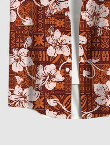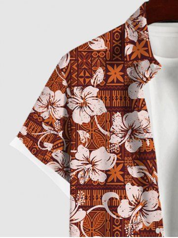 Hawaii Plus Size Turn-down Collar Vintage Floral Patternblock Graphic Print Button Pocket Shirt For Men - Red - 4xl