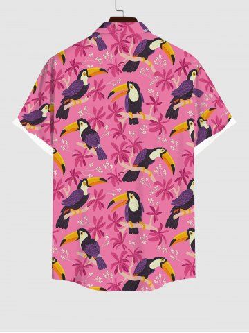 Hawaii Plus Size Turn-down Collar Woodpecker Floral Leaf Print Button Pocket Shirt For Men - Light Pink - L