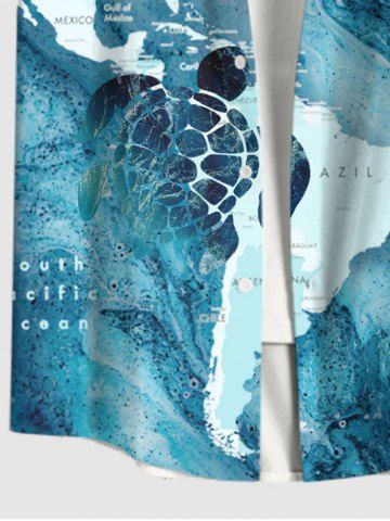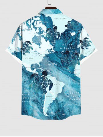 Short Sleeves Shirts > Plus Size Turtle Blue Ocean Sea World Map Pattern Print Buttons Pocket Hawaii Shirt For Men