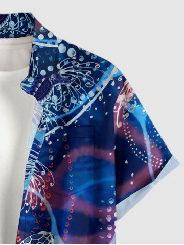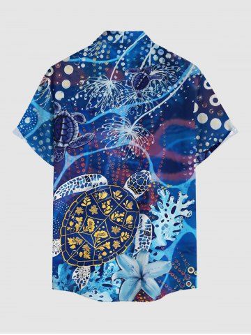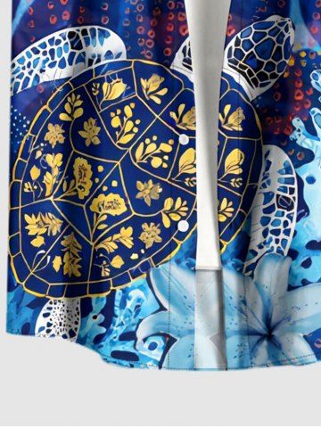 Plus Size Turtle Coral Flower Print Hawaii Sea Creatures Button Pocket Shirt For Men - Blue - 6xl