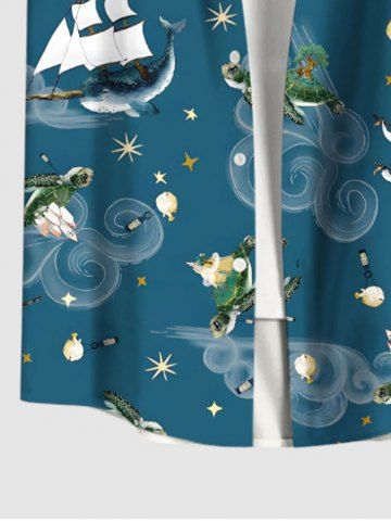 Short Sleeves Shirts > Plus Size Turtle Dolphin Sea Waves Sailboat Stars Print Hawaii Sea Creatures Cruise Shirts For Men