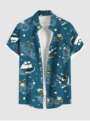 Short Sleeves Shirts > Plus Size Turtle Dolphin Sea Waves Sailboat Stars Print Hawaii Sea Creatures Cruise Shirts For Men