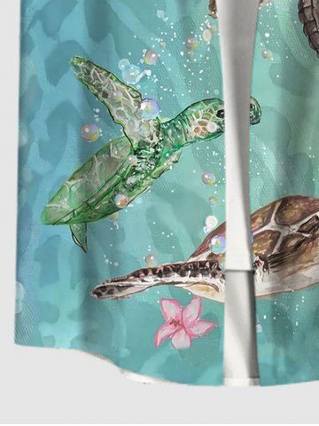 Plus Size Turtle Floral Water Wave Print Hawaii Sea Creatures Button Pocket Shirt For Men - Light Green - 4xl