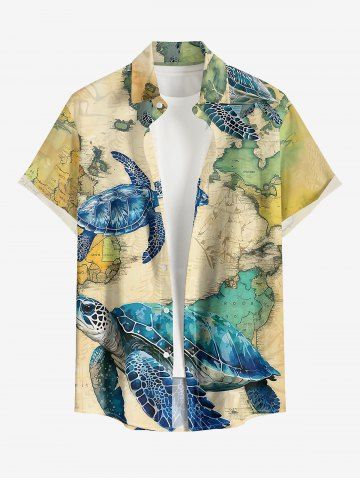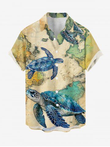 Short Sleeves Shirts > Plus Size Turtle Map Print Hawaii Sea Creatures Button Pocket Shirt For Men