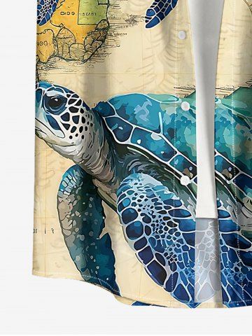 Short Sleeves Shirts > Plus Size Turtle Map Print Hawaii Sea Creatures Button Pocket Shirt For Men