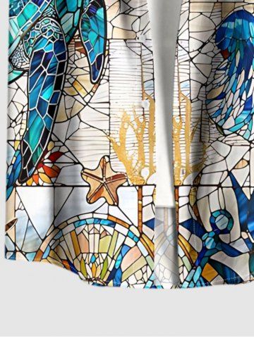 Plus Size Turtle Sailor Coloured Glass Print Hawaii Button Pocket Shirt For Men - White - S