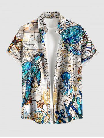 Plus Size Turtle Sailor Coloured Glass Print Hawaii Button Pocket Shirt For Men - White - 6xl